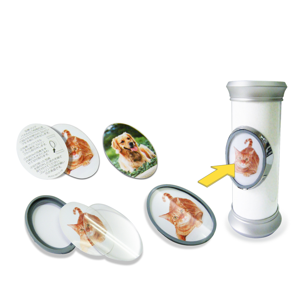 ※中央部に故人の写真などを入れる事ができる「写真クリアパネル」が付属していますので、お客様ご自身で好きな写真に入れ替えすることができます。