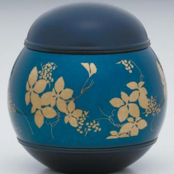 ・蒔絵風な絵柄の高級感・重量感あるお骨壺です。